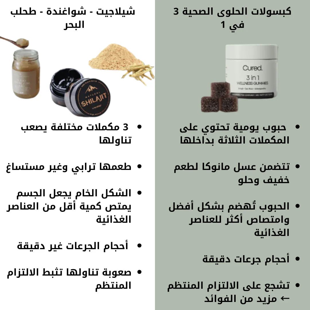 100% شيلاجيت نقي، طحالب بحرية، وأشواغاندا